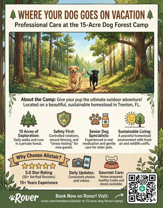 We invite our friends to use us to board their pup privately through the Rover app, which gives the Rover guarantee for insurance purposes if your loved one were to need emergency services. We are not a boarding facility, and this is a private agreement through neighbors. We have walking trails, outdoor kennels and air-conditioned crate rooms.
